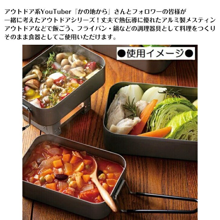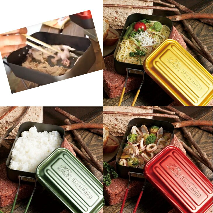 アルミ メスティン M 850ml アウトドア グッズ アルミ製 調理器具 キャンプ 飯ごう 鍋 食器 軽量 コンパクト おしゃれ かわいい レッド イエロー グリーン スケーター オリジナル かの地からさん監修 キャンプ 折りたたみ式 レシピ付き バーベキュー 登山 ツーリング 野外